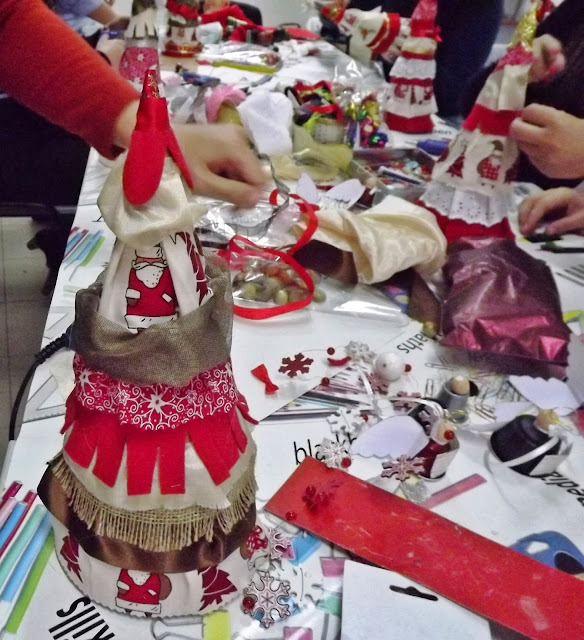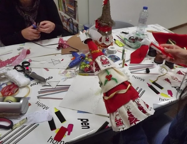 | Colocando os rolinhos de feltro dentro da caixa. |