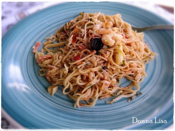 Andava, há já umas semanas, com vontade de fazer algo com camarão porque tenho visto em muitas receitas "light", e pareceu-me estes 2 ingredientes resultariam numa combinação interessante: noodles com camarão.
