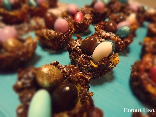 Encontrei uma ideia da Martha Stewart (oh grande mestra!) de fazer uns ninhos de cereais, que depois se pode preencher com o que se quiser (amêndoas, bombons, etc.).